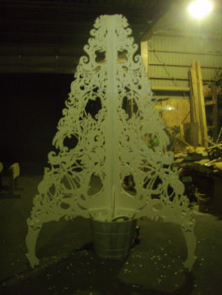 ツリーの根元から吹雪の素材を心棒の管に挿入して