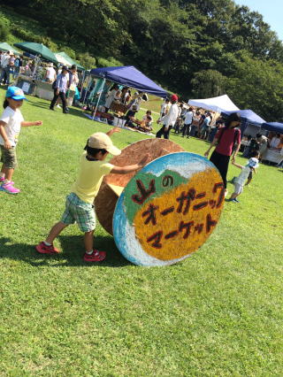 山のオーガニックマーケットの会場では玉コロガシ◎プロジェクトがこのイベントの空間を